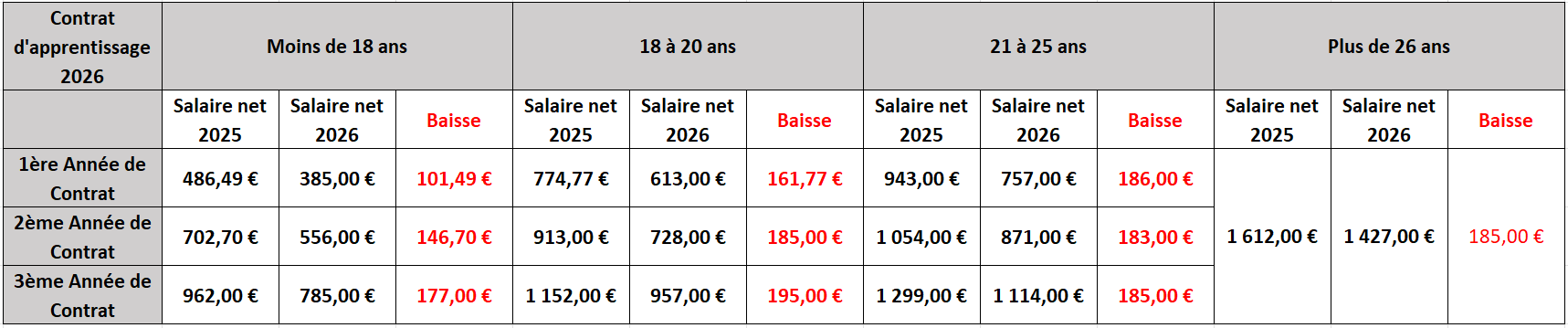 La grille de rémunération restera structurée autour de l’âge et de l’année d’apprentissage, mais elle sera recalculée en tenant compte des prélèvements obligatoires. Autrement dit, les pourcentages du SMIC attribués aux alternants ne changent pas, mais le montant net perçu sera plus faible.